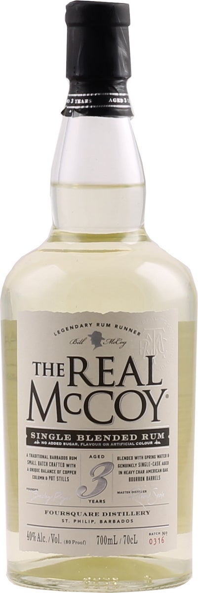 The Real McCoy 3-Year-Old Rum är en len och lättillgänglig rom, buteljerad med 40% ABV. Den har en ljusgyllene färg och en doft av tropiska frukter, vanilj och en antydan till karamell. Smaken är len och välbalanserad, med smaker av melass, kokos och en aning kryddor, vilket leder till en ren och uppfriskande avslutning. Denna rom är perfekt att sippa ren, med is eller som en mångsidig bas för en mängd olika cocktails. Njut av den i klassiska cocktails som Daiquiri, Mojito och Piña Colada.